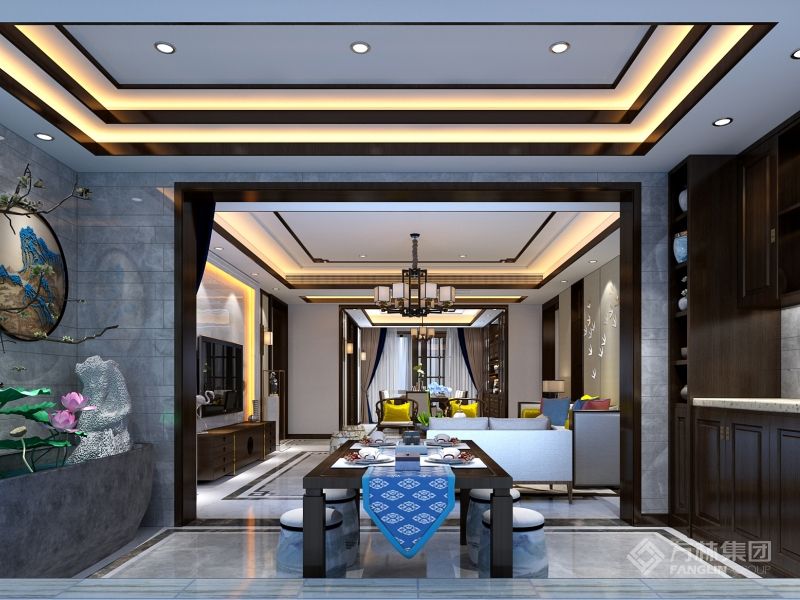 采用简洁硬朗、横平竖直的线条。讲究材质选择,选择的装修材料会与传统的古典元素形似。