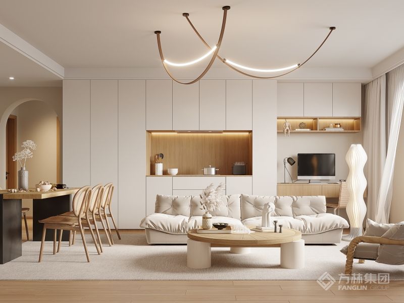 硬装简洁,家居线条柔和,整体风格简洁统一