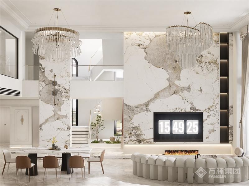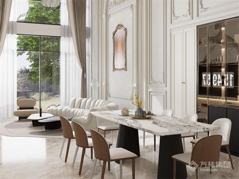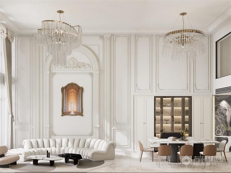 适配三世同堂的生活模式。大量运用法式经典元素如雕花、线条,结合大理石、水晶等材质,营造奢华氛围。开放式布局增强空间互动性,在满足各代生活需求的同时,让居者尽享法式浪漫与现代舒适的融合之美。(采用全案设计理念全屋效果图做落地支撑)